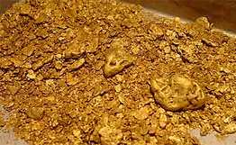 砂金礦床分布甚廣,種類繁多,按其搬運距離的遠近通常可分為五種:殘積,坡積,洪積,河床沖擊和濱岸砂金礦床,其中以河床沖積型為多見。按搬營力的性質(zhì)可分為風成砂金礦床,冰成砂金礦床和水成砂金礦床。按其搬運的時代不同又分為深藏砂金礦床,階地砂金礦床和河灘砂金礦床。砂金礦床的寬度一般為50-300米或更寬,長度可達數(shù)公里甚至數(shù)十公里,埋藏深度一般為1-5米,也有深至20-30米或者更深。礦床的含金厚度一般為1-5米,個別可達10米。金在砂金礦中多呈粒狀,片狀,枝葉等形態(tài)存在,金的粒徑一般為0.5-2毫米,但也有重達幾公斤的大塊金及呈粉狀的微粒金。金的成色通常為50-90%,比重17.6-18.